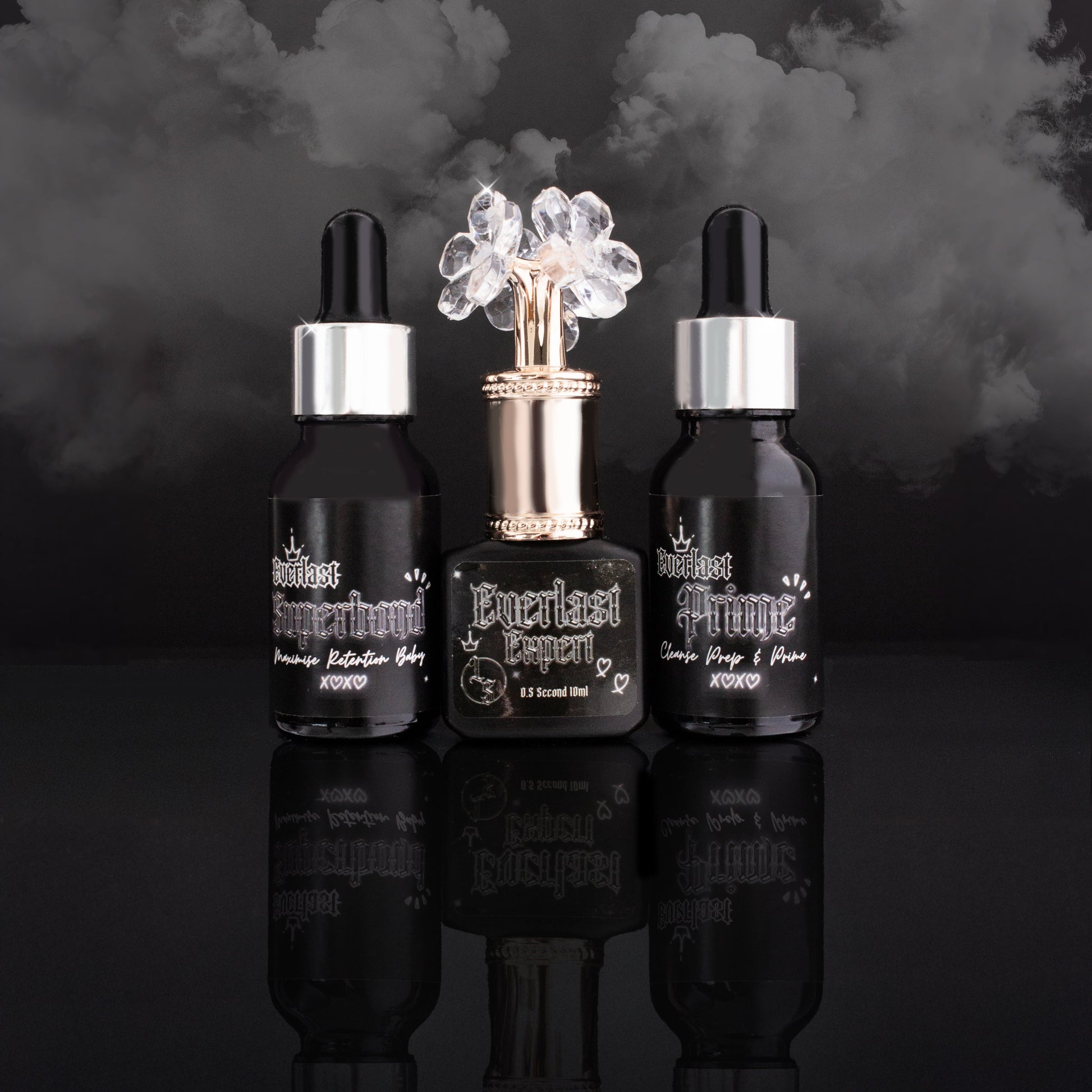 9.Lastly ALWAYS use Everlast Superbonder. Curing the glue allows the fumes to be neutralised and reduce irritation and chemical burns. No client wants watery stinging eyes. This also enables clients to get their lashes wet right away.